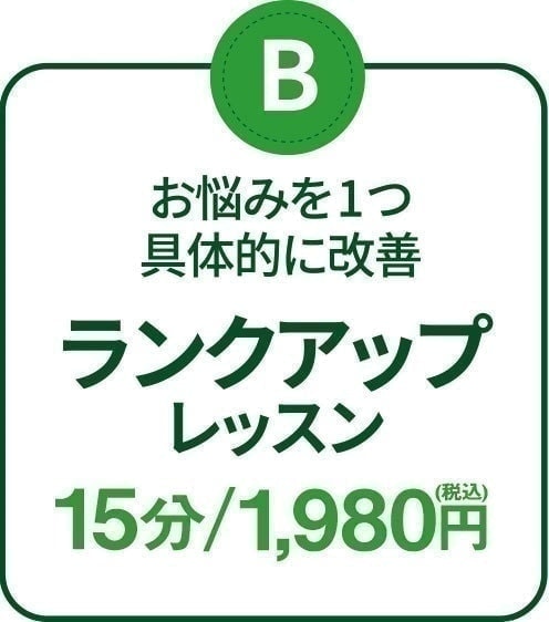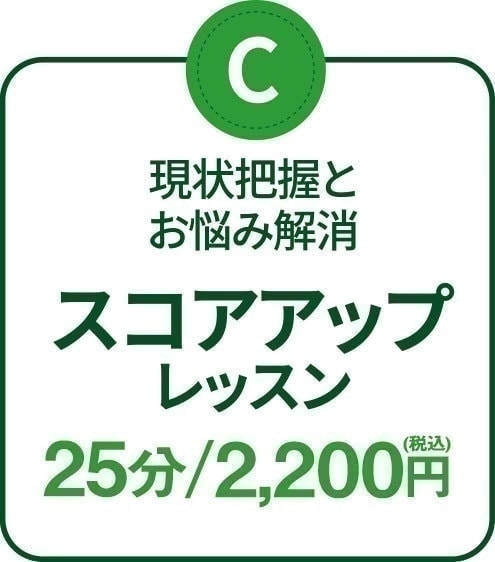 | 3つのレッスンの違いは何ですか? | 「ワンステップレッスン」は、現在のお客さまのアドレスやスイング等をインストラクターが分析し、お悩みの原因を把握するものです。 |