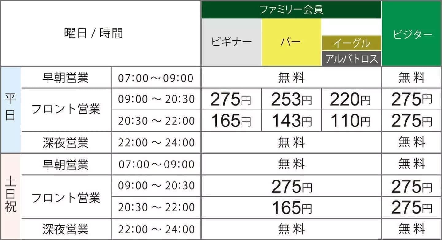 年中無休 早朝営業7:00~9:00 フロント営業9:00~22:00 深夜営業22:00~24:00 |
